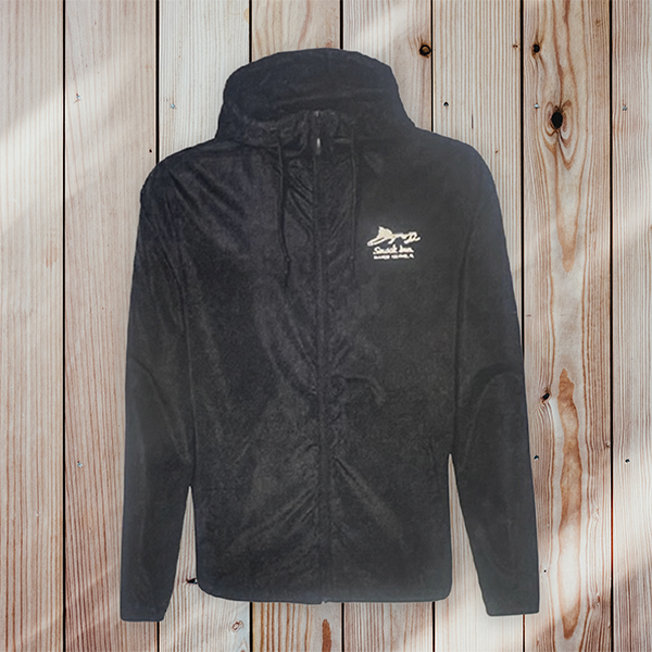 Fabric – 100% Polyester with interior water-resistant coating, no lining, zipper pull, three panel hood, pockets with mesh pocket bags, tightening toggle at waistband, elastic cuffs, locker loop in center back